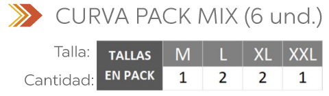 IMPORTANTE: Por favor verifique bien la distribución de tallas en los pack (6 und). (Al ser una COMPRA AL POR MAYOR no hay cambios de tallas), así juntos mejoramos su experiencia de compra.