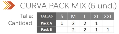 IMPORTANTE: Por favor verifique bien la distribución de tallas en los pack (6 und). (Al ser una COMPRA AL POR MAYOR no hay cambios de tallas), así juntos mejoramos su experiencia de compra.