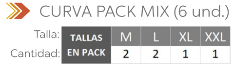IMPORTANTE: Por favor verifique bien la distribución de tallas en los pack (6 und). (Al ser una COMPRA AL POR MAYOR no hay cambios de tallas), así juntos mejoramos su experiencia de compra.