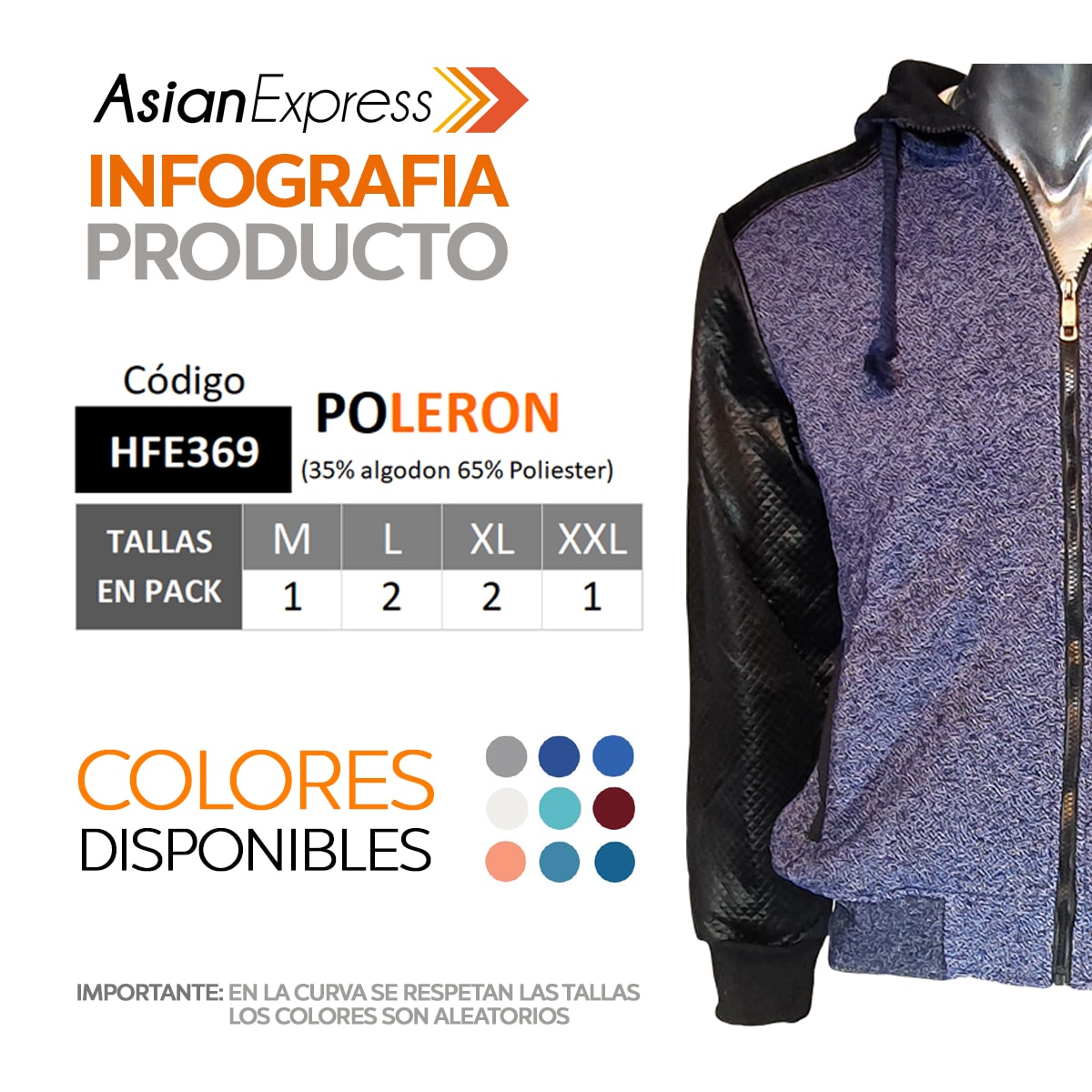 Polerones 35% Algodon con 65% poliester, con gorro, bolsillos cierre