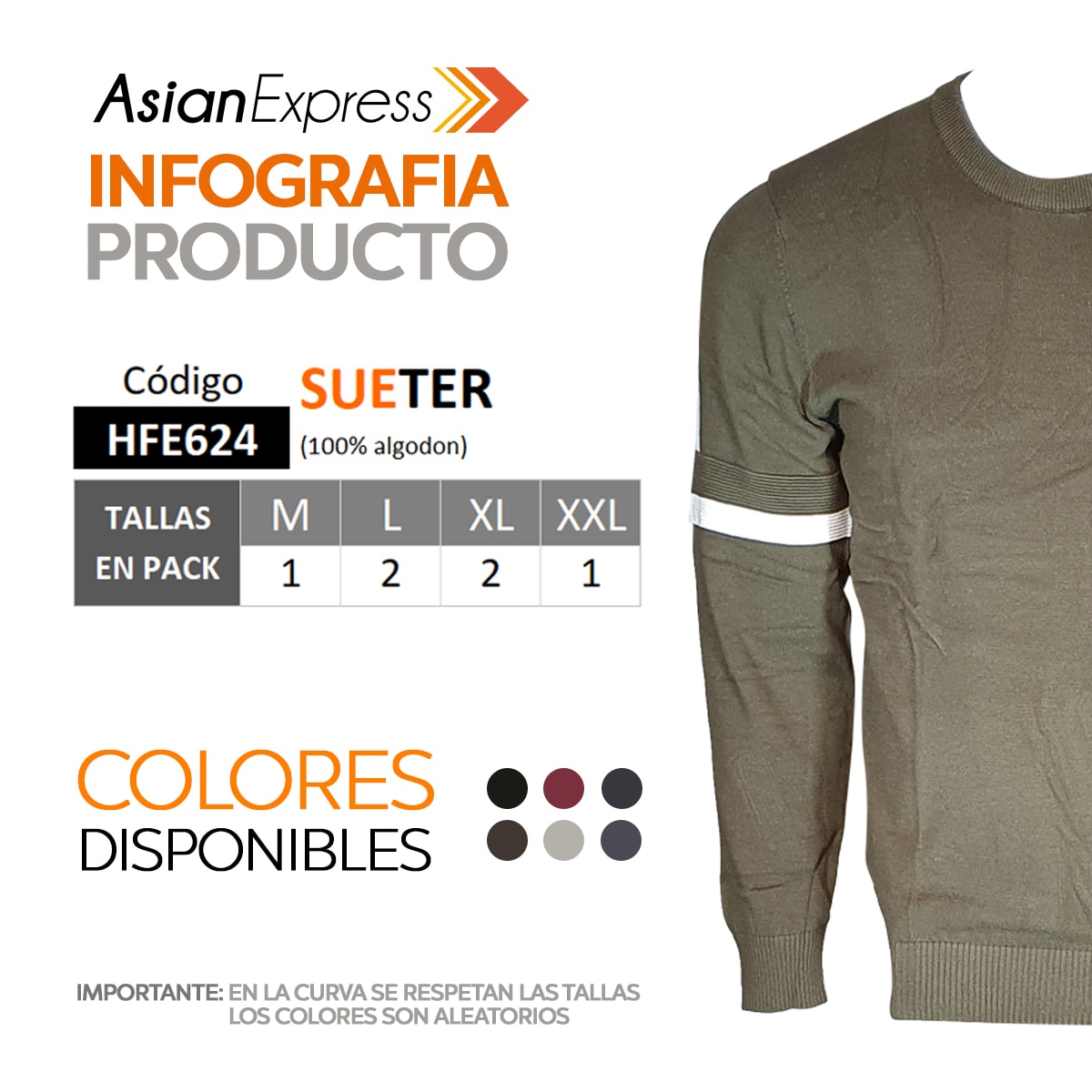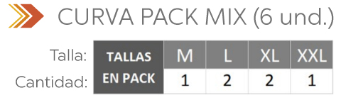 IMPORTANTE: Por favor verifique bien la distribución de tallas en los pack (6 und). (Al ser una COMPRA AL POR MAYOR no hay cambios de tallas), así juntos mejoramos su experiencia de compra.